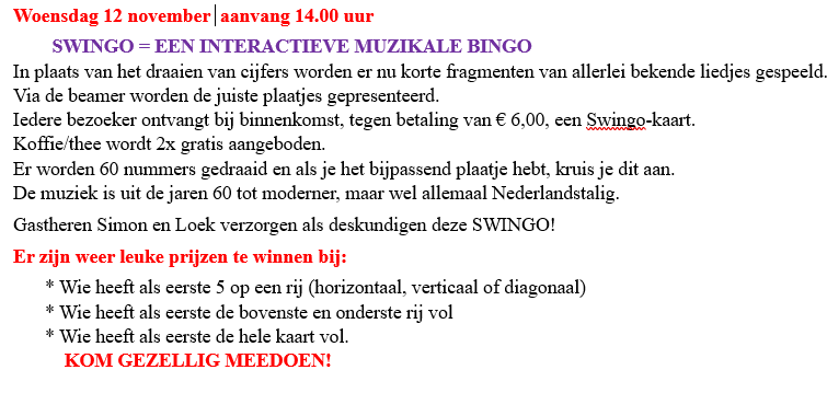Swingo woensdag 12 november