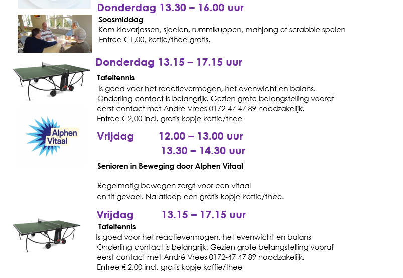 Maak uw spieren los en soepel in de Torenzaal en geniet van het onderlinge contact.
